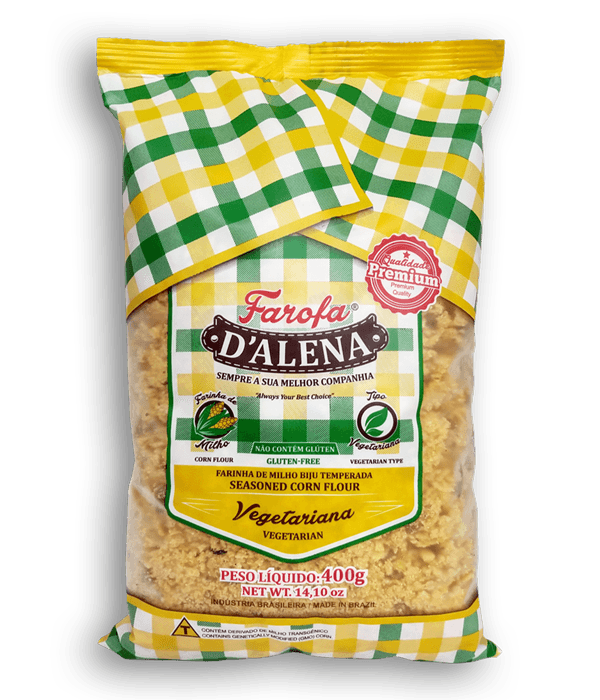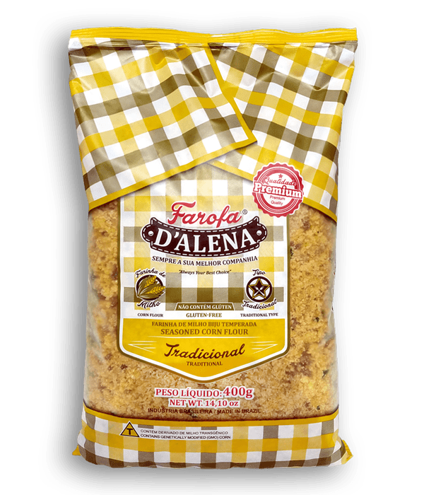 The Traditional Corn Farofa D'Alena has the seasoning that you already know, but in its ingredients has the biju corn flour. Those who try do not forget.